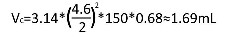 例如一根4.6mm內徑,150 mm柱長的色譜柱柱體積為: