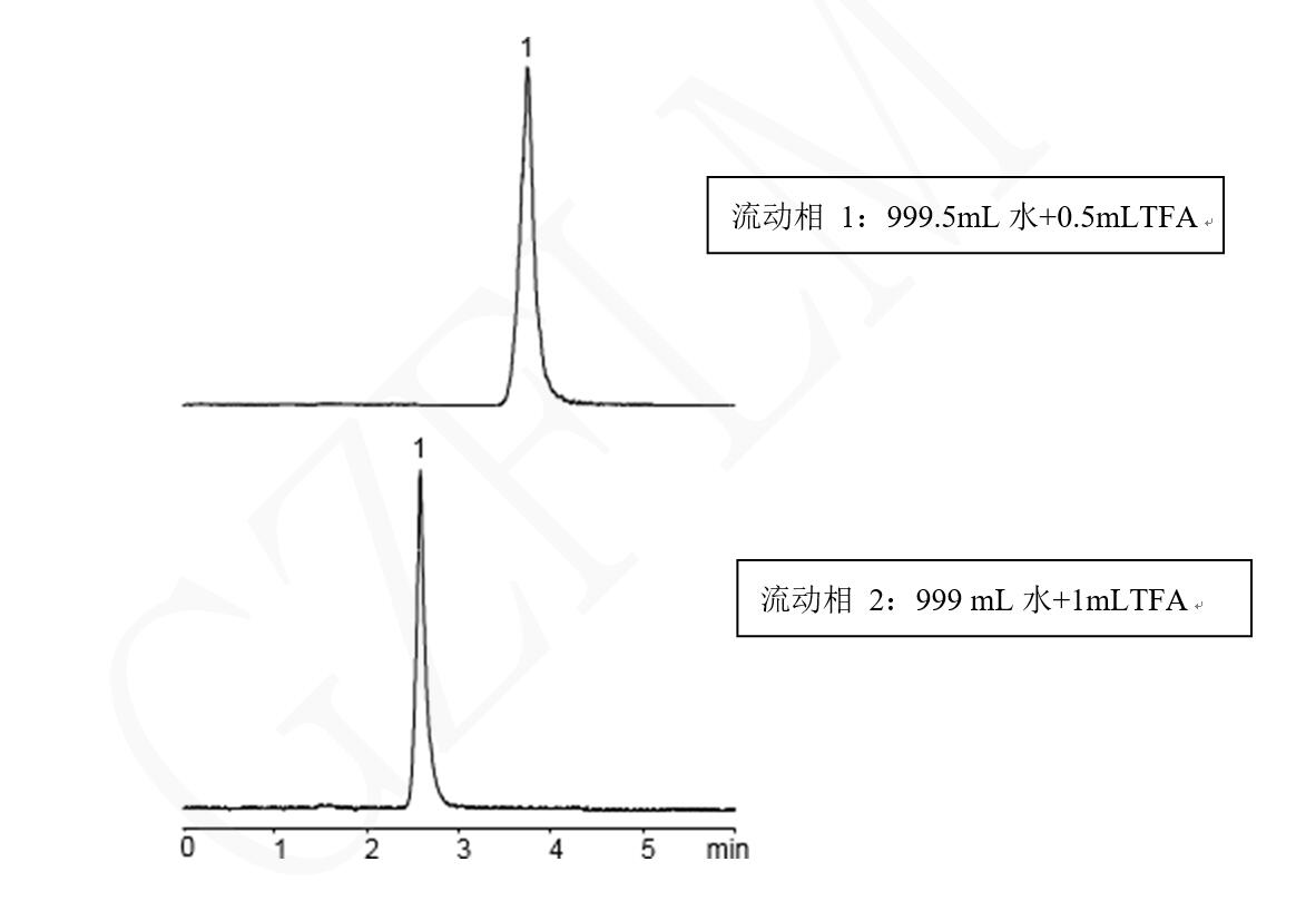說明:因條件所限,在 ELSD 下按上述條件對肼進行分析。如果是 LC-MS 檢測器,TFA 可以改為 0.1%甲酸,或者用 10mM 的甲酸銨,并可適當添加乙腈
