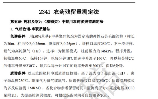 擬修訂《中國藥典》2015年版四部“0212藥材和飲片檢定通則”,并擬在“2341農藥殘留量測定法”中新增“第五法藥材及飲片(植物類)中禁用農藥多殘留測定法”,在檢定通則中規定了33種禁用農藥不得檢出(不得過定量限)。