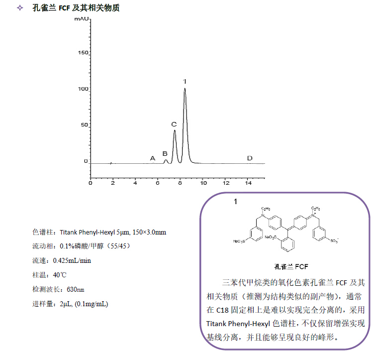 - 苯己基鍵合相,可以提供疏水作用和 π-π 作用,特別對于具有芳香環和雙鍵結構等長共軛化合物,可以增強保留時間,從而實現分離