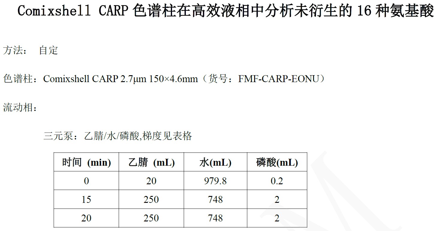 菲羅門也推出Comix系列智能神柱,可以在以ELSD、 CAD或者MS為檢測器的條件下分析氨基酸。