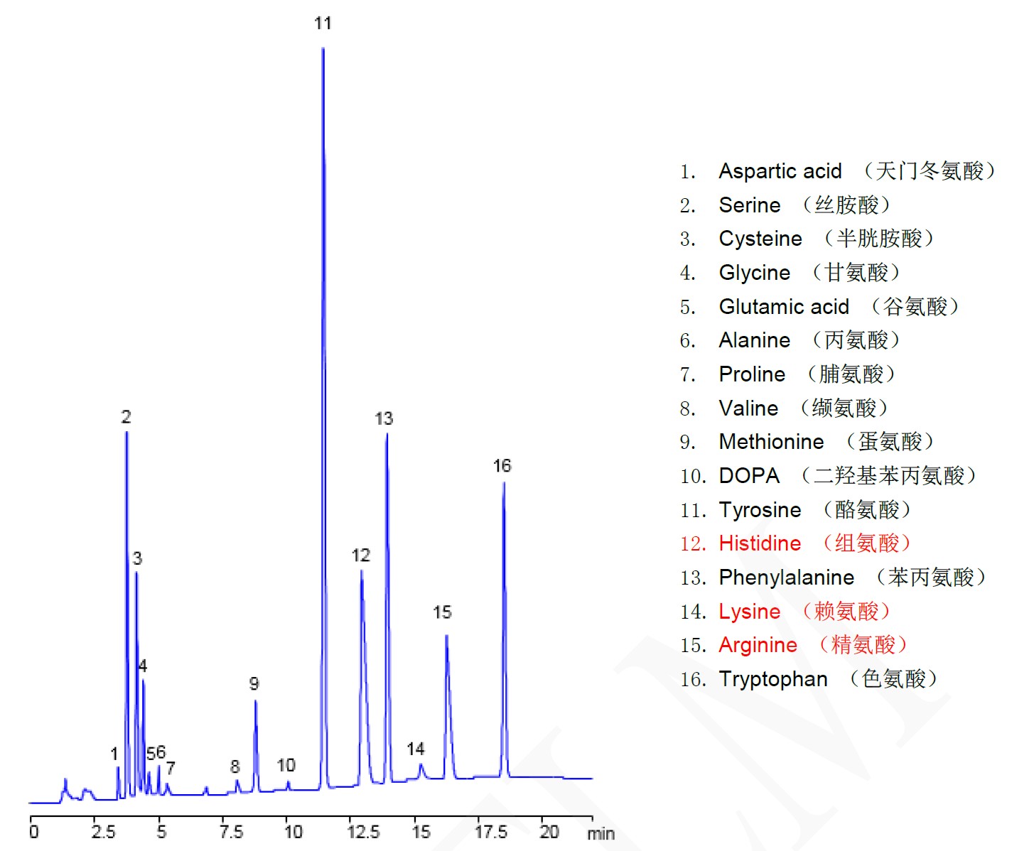 通過衍生反應在氨基酸上接上疏水且有紫外吸收的基團,可以實現在C18柱+反相流動相的體系下進行HPLC分析。