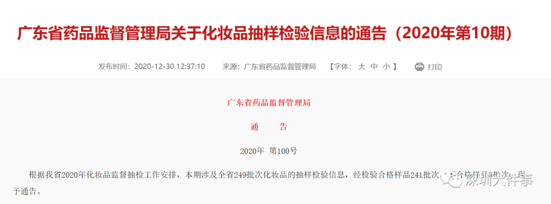 針對監督抽檢中的不合格化妝品,廣東省藥監局已組織省內各相關市場監督管理局依法對有關生產經營企業進行立案調查,責令生產經營企業召回不合格產品,查清不合格產品的數量和流向;對核查為假冒的化妝品要追查相關經營企業的進貨渠道,嚴厲打擊生產銷售假冒偽劣化妝品違法行為。