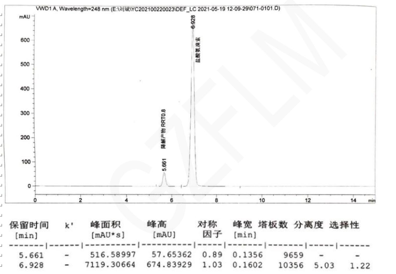 客戶評價:鹽酸氨溴索與降解產(chǎn)物峰(相對保留時間約為 0.8)的分離度大于 4.0,符合標準要求。本案例及評價來自某省級藥檢所