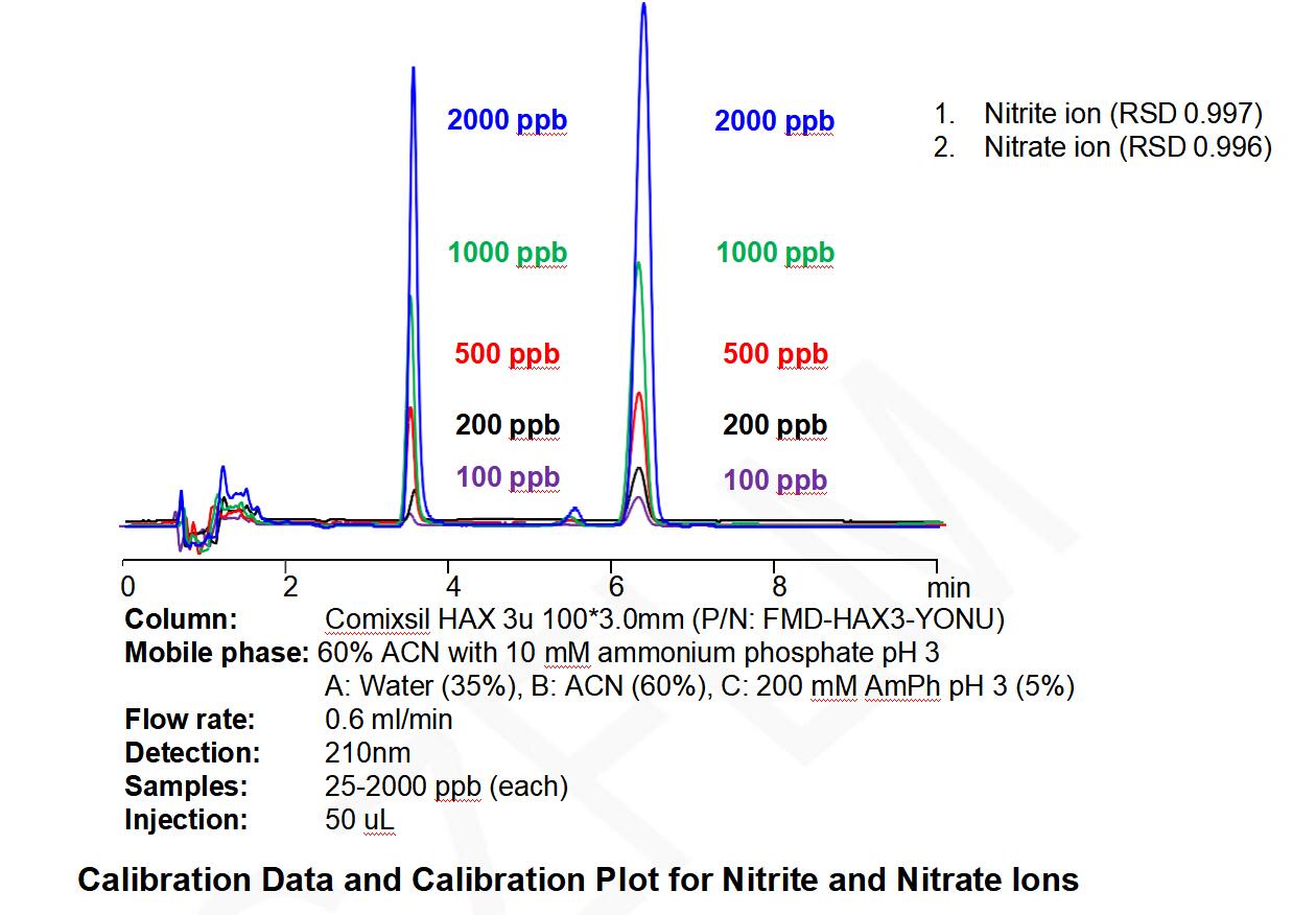 Comixsil HAX基于UV檢測(cè)器對(duì)于樣品中亞硝酸根與硝酸根離子的定量線性研究