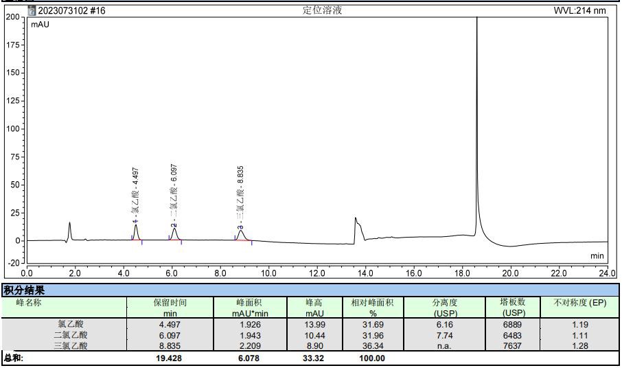 基因毒性雜質(氯乙酸、二氯乙酸、三氯乙酸)RPLC-UV 法測定