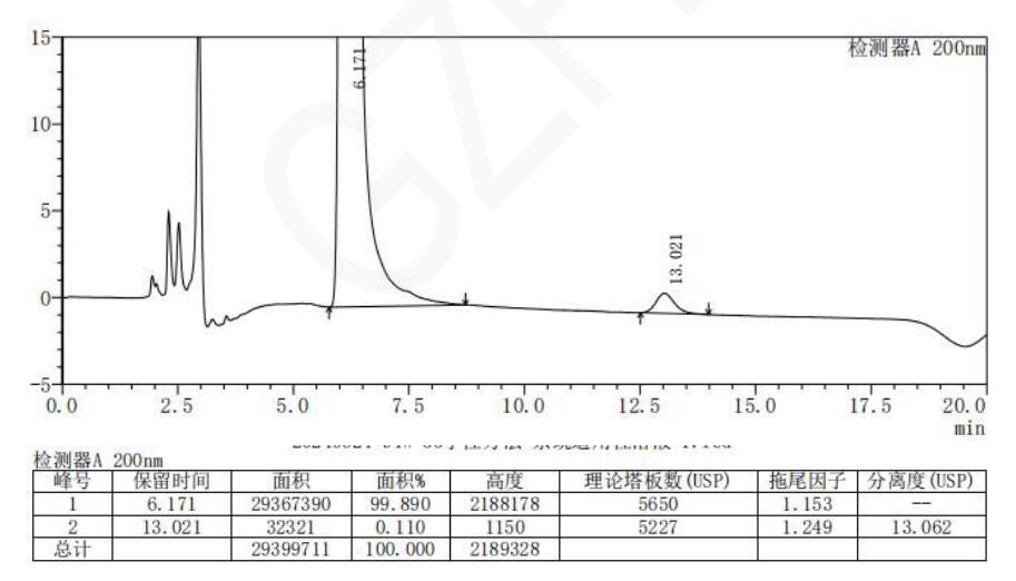 App ID: FLM-B240006 甘氨酰-谷氨酰胺及其對映異構(gòu)體的手性拆分 色譜柱:ChiralSug TAG 5μm 250*4.6mm (貨號:FMG-TAG-EONU) 流動相:反相(咨詢) 流速:1.0 mL/min 檢測波長:200nm 柱溫:35℃ 樣品濃度:N/A 稀釋劑:水 進樣量:10ul 色譜圖: ![]() |