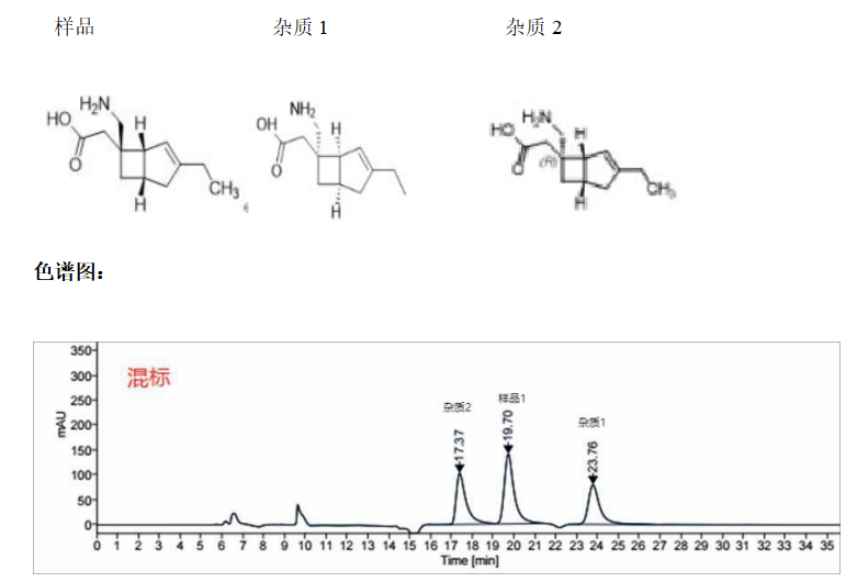 1. **選擇合適的手性柱**:根據米洛巴林的化學結構和性質,選擇合適的菲羅門手性柱進行拆分。這可能需要考慮手性柱的固定相類型、粒徑、柱長等因素。 2. **優化色譜條件**:通過調整流動相組成、流速、溫度等色譜條件,優化米洛巴林的手性拆分效果。這可能需要進行多次實驗和條件優化。 3. **進樣與分析**:將米洛巴林的樣品注入色譜系統,通過手性柱進行分離。記錄和分析色譜圖,確定各對映體的保留時間和峰面積等參數。 4. **結果驗證**:通過對比標準品或采用其他方法進行驗證,確認拆分結果的準確性和可靠性。