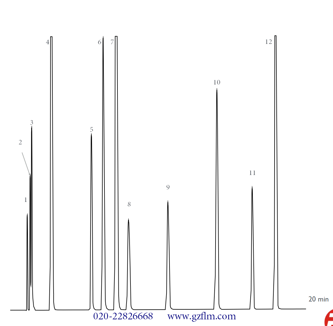消費(fèi)者在購買食品時也應(yīng)注意查看食品配料表和營養(yǎng)成分表等信息,了解食品中是否添加了二氧化硫或其鹽類作為食品添加劑,并合理控制攝入量。同時,對于顏色過白、過于鮮亮或有刺激性氣味的食品應(yīng)保持警惕,避免購買和食用可能過量添加二氧化硫的食品。 Sulfur compounds Column: FBX-VOC 2 - 0.53mm, 5.00μm, 30m Conditions: Oven Program: 30°C, 5°C/min, 130°C Carrier Gas: Hydrogen, 3.8mL/min Injector: 200°C Detector: FPD, 200°C Peak identification 1.Hydrogen sulfide 2.Carbonyl sulfide 3.Sulfur dioxide 4.Methanethiol 5.Methyl sulfide 6.Ethanethiol 7.Carbon disulfide 8.2-propanethiol 9.1-propanethiol 10.Thiophene 11.1-butanethiol 12.Methyl disulfide ![]() |