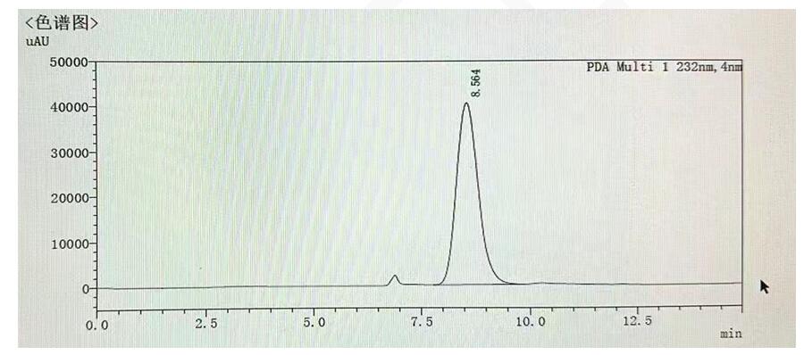 App ID: FLM-M250001 MARS MCa 柱對醫(yī)藥輔料及食品中透明質(zhì)酸鈉含量的測定 色譜柱:MARS MCa 10u 7.8*300mm (貨號:FMH-1130-KONU) 流動相:1%磷酸 流速:0.6 mL/min 檢測波長:232nm 柱溫:40℃ 樣品濃度:1mg/ml 進(jìn)樣量:20ul 方法參照團體標(biāo)準(zhǔn): T/SNHFA 012-2021 食品中透明質(zhì)酸鈉含量的測定 稀釋劑:磷酸鹽緩沖液(pH6.0):稱取磷酸二氫鈉(5.1.1)27.4 g、磷酸氫二鈉(5.1.2)8.8 g,置1000 mL 容量瓶中,加水稀釋至刻度,搖勻,得 0.2 mol/L 磷酸鹽緩沖液。 檢測原理:來源于細(xì)菌的透明質(zhì)酸酶在適宜條件下,作用于透明質(zhì)酸鈉β-1,4 糖苷鍵,通過β消除反應(yīng)生成不飽和透明質(zhì)酸鈉雙糖(ΔDiHA),采用高效液相色譜法測定,外標(biāo)法定量。 色譜圖: