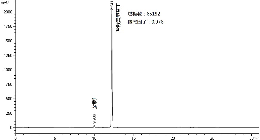 流動(dòng)相:A:磷酸鹽緩沖液(取磷酸6.8ml置1900ml水中,加入50%氫氧化鈉溶液8.6ml,加水至2000ml,用磷酸或50%氫氧化鈉溶液調(diào)節(jié)pH值至7.1±0.05)-乙腈(98:2)