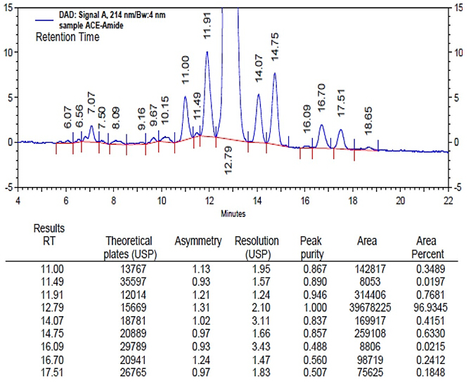 色譜柱:ACE Excel C18-Amide 3μm 100×4.6mm(貨號:EXL-1112-1046U)