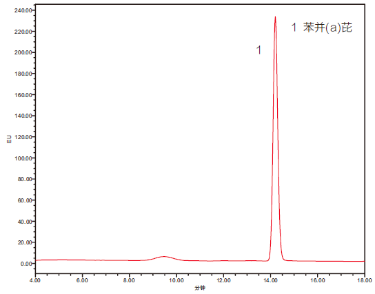 2、添加水平為0.05 mg/kg植物油中苯并(a)芘檢測的液相色譜圖