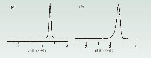 1.5.由于目前的色譜柱性能優良,因此極不可能出現伸舌峰(伸舌峰的現象隨著現今柱填充技術的提高已相當少見)。
