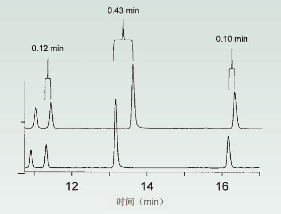 當流動相發(fā)生變化時,峰形(色譜峰)通常會向相同的方向移動,以縮短或延長保留時間(保留時間變長或變短);而相對保留(選擇性因子,a)通常會發(fā)生變化。