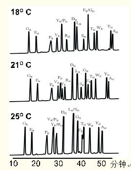 溫度會(huì)顯著影響肽圖譜中多肽的分離,如圖24所示。